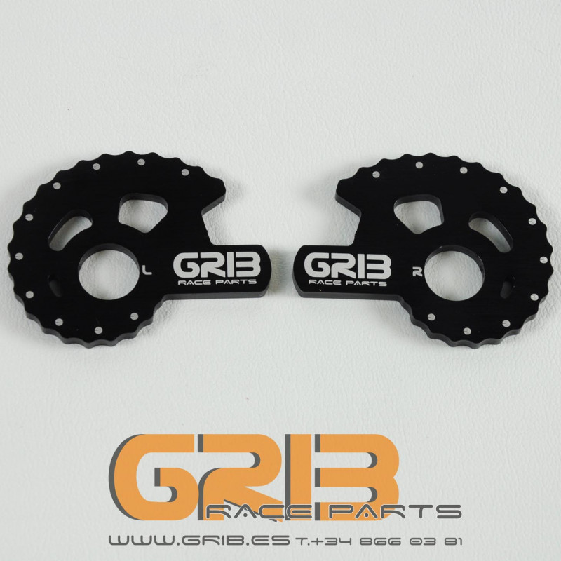 Excéntricas de rueda para tensar la cadena, nuevo diseño que garantiza que cada click tensa la cadena exactamente 1.2 mm.Esto no ocurre con el resto de excenticas del mercado ya que cada click, tensa medidas diferentes.